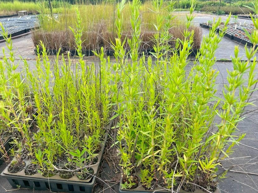 A perennial herbaceous plant native to eastern North America. It grows up to 2-3 feet tall and features square stems with narrow, lance-shaped leaves that emit a minty fragrance when crushed. In mid to late summer, it produces clusters of small, white or pale lavender flowers that attract pollinators, making it a popular choice for wildflower gardens and naturalistic landscapes.